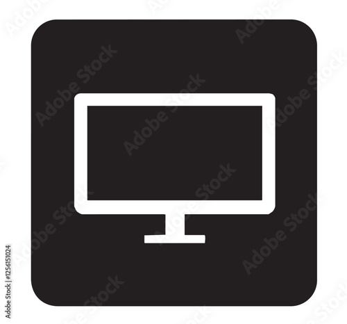 Black square computer monitor vector icon.