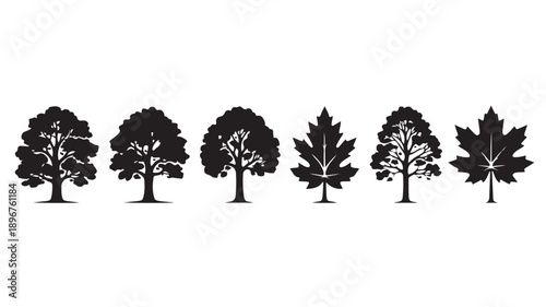 Black Tree and Leaf Silhouettes Vector Illustration Isolated on White