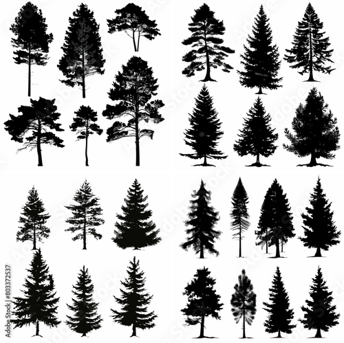 black tree silhouette set pure badge eco outline recreation breath emblem label protection graphic pine trunk woodland