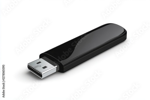 Black USB Drive Vector Silhouette Design Isolated on White Background