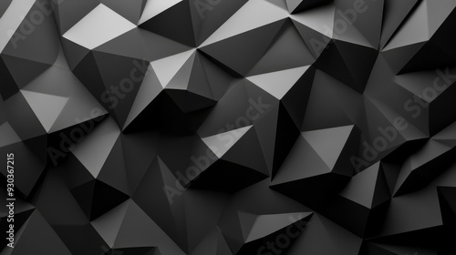 Black white dark gray abstract background. Geometric pattern shape. Line triangle polygon angle. Gradient. Shadow. Matte. 3d effect. Rough grain grungy. Design. Template. Presentation, ai