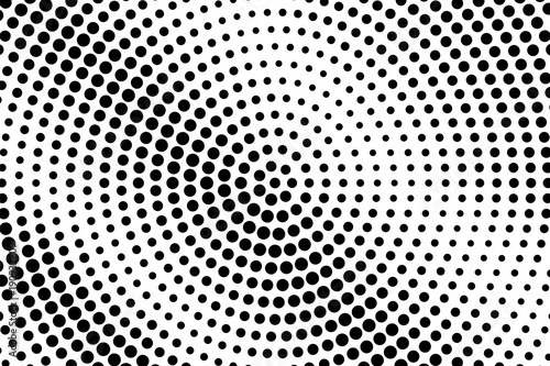 Black white dotted halftone. Half tone vector background. Radial frequent dotted gradient.