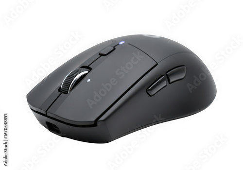 Black wireless computer mouse isolated on transparent background