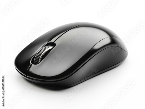 Black wireless computer mouse on a white background