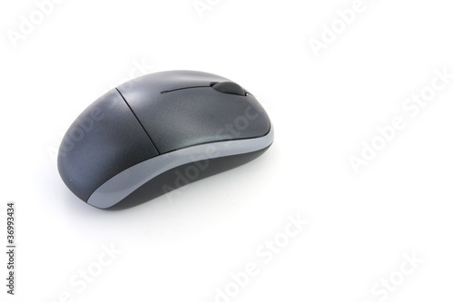 black wireless computer mouse on white background