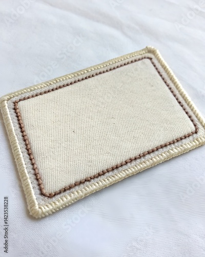 Blank fabric patch mockup with stitched border on , perfect for branding design.