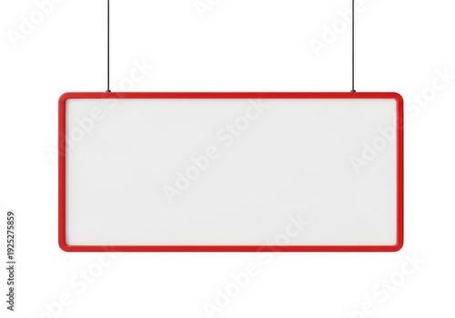 Blank rectangular sign with red border hanging from two strings isolated on transparent background