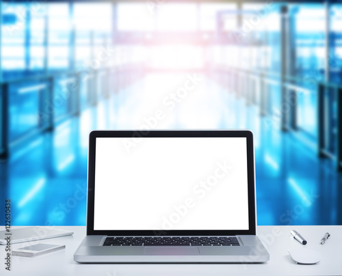 Blank screen laptop computer on office table
