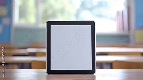 Blank Tablet Screen in Classroom Setting Mockup