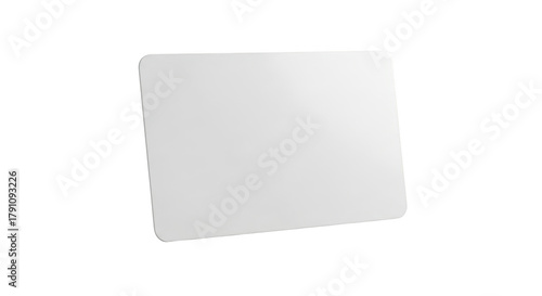 Blank white rectangular card with rounded corners tilted on a black background isolated on a transparent background