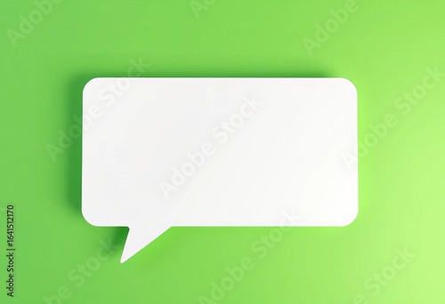 Blank white speech bubble on solid green background, information, simple