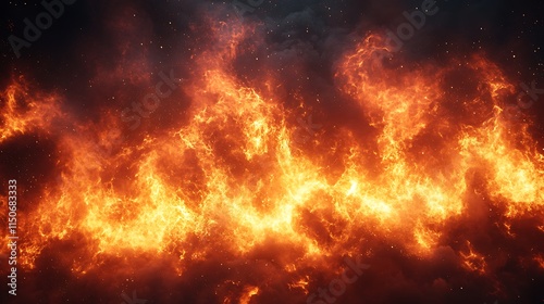 Blazing inferno with thick smoke billowing under dramatic stormy sky patterns wallpaper image