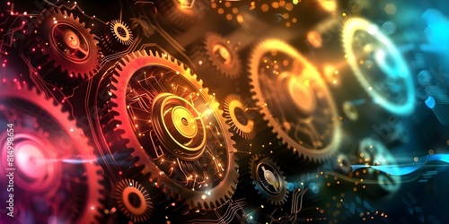 Blending Vintage Technology Elements: Cogs and Computer Circuits. Concept Vintage Technology, Cogs, Computer Circuits, Steampunk Aesthetics, Industrial Design