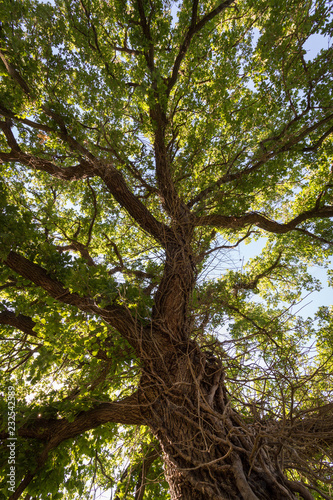 Blick in die grüne Baumkrone einer Eiche