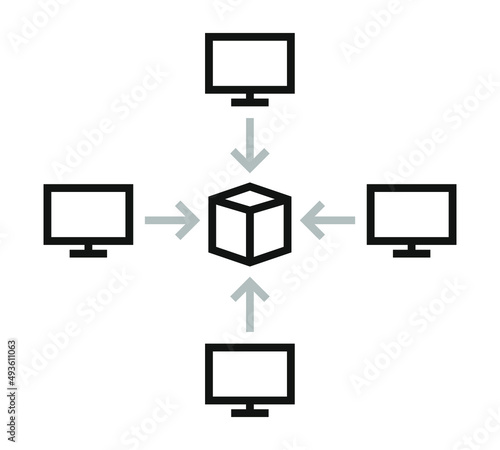 Blockchain computer system connect cube icon design vector illustration. Crypto currency digital smart contract protocol contain cryptography hash, transaction data, global linked network.