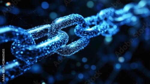 blockchain encryption Digital chain link with glowing effects Quantum Computing vs. Blockchain Security A battle between quantum computers and next-generation