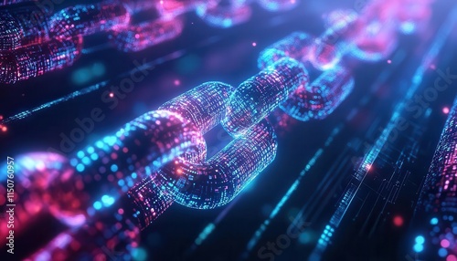 Blockchain ledger with vibrant data, sleek design, dynamic energy