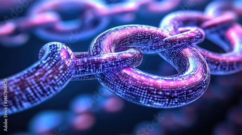 Blockchain Link Digital Chain with Secure Network, Neon Data, and Connection.