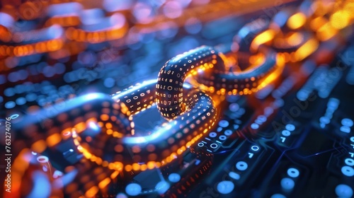 Blockchain links, encrypted data chains, secure tech