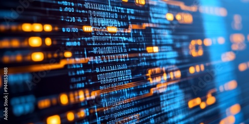 blockchain nodes displayed on a digital screen, with intricate data encryption algorithms in focus