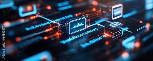 Blockchain nodes visualized in a global network securing supply chains, distributed ledger technology in logistics