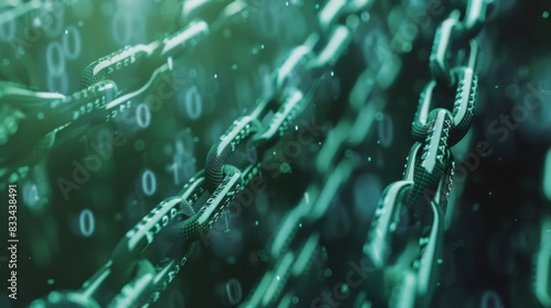 Blockchain Revolution - Binary Code Chains Symbolizing Secure Digital Transactions. An image highlighting the profound impact of blockchain technology, featuring chains made of binary code representin