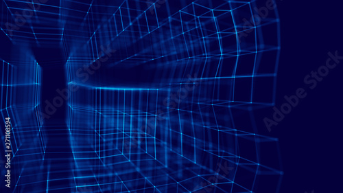 Blockchain technology concept. Big data visualization. 3D blue illustration. Distributed register technology