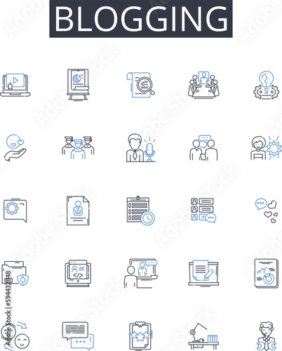 Blogging line icons collection. Vlogging, Socializing, Podcasting, Article writing, Content creating, Journaling, Online writing vector and linear illustration. Digital storytelling,Writing blog