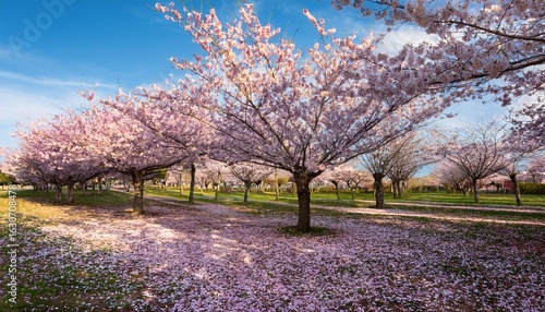 blossoming cherry trees with fallen petals
