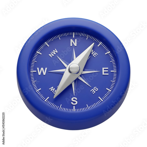 Blue 3D Compass Icon Navigation Tool Isolated on a transparent background direction