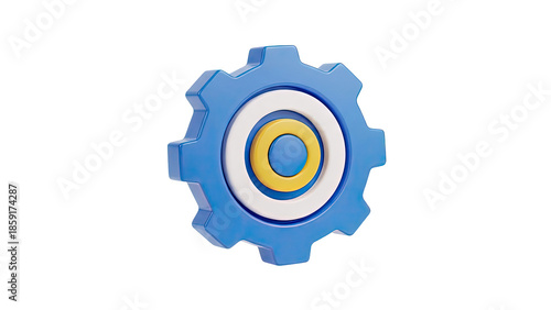Blue 3D Gear Icon with Concentric Circles