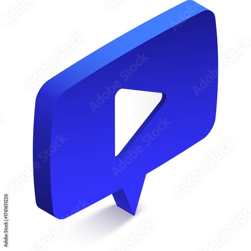 Blue 3D Play Button Icon Inside A Speech Bubble With Transparent Background And Subtle Shadow
