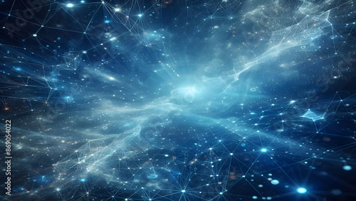 Blue abstract background with network grid and particles