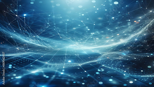 Blue abstract background with network grid and particles