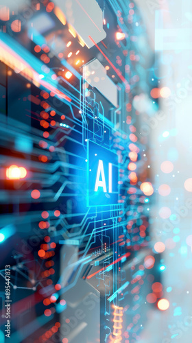 Blue "AI" background with digital and technological elements. AI generative.