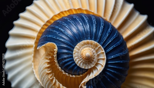 Blue and Cream Nautilus Shell Closeup.