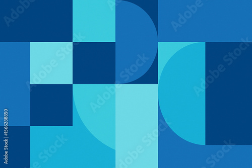 Blue and cyan color-blocked abstract geometric composition, flat design background