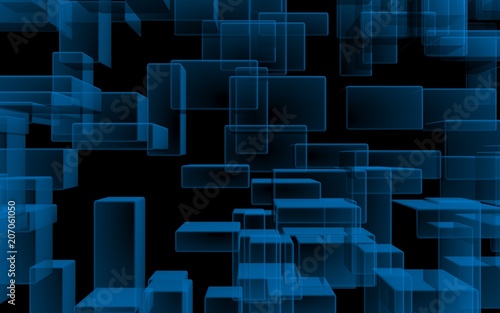 Blue and dark abstract digital and technology background. The pattern with repeating rectangles