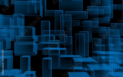 Blue and dark abstract digital and technology background. The pattern with repeating rectangles. 3D illustration