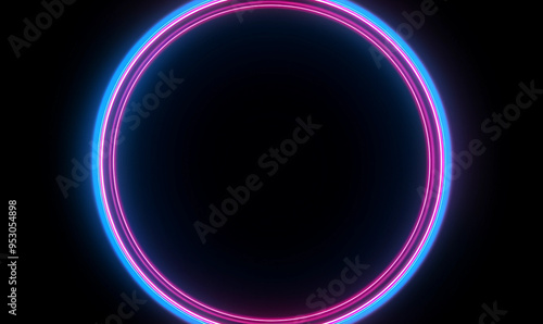Blue and pink neon glowing glare circle with rays