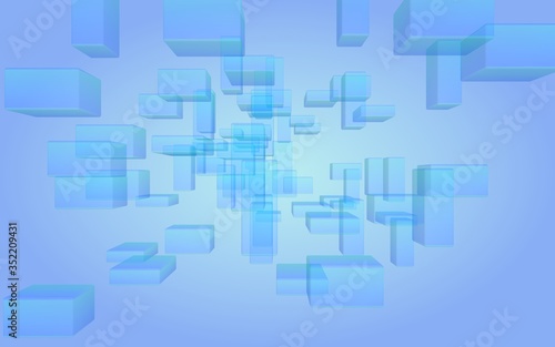Blue and purple abstract digital and technology background. The pattern with repeating rectangles. 3D illustration