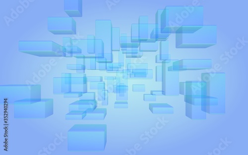 Blue and purple abstract digital and technology background. The pattern with repeating rectangles. 3D illustration