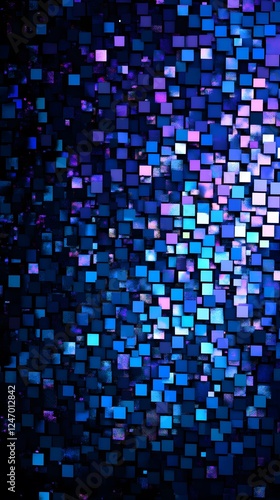 Blue and purple pixelated dots on a black background