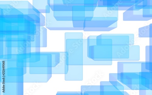 Blue and white abstract digital and technology background. The pattern with repeating rectangles. 3D illustration