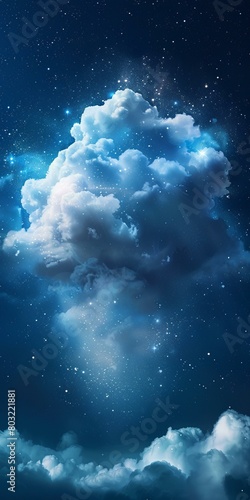 Blue and white cloudscape with stars