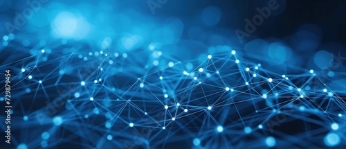 Blue background digital network connecting with moving lines and dots low-poly wireframe