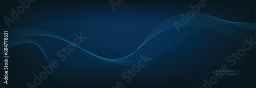 Blue background with flowing wave lines. Futuristic technology concept. Vector illustration