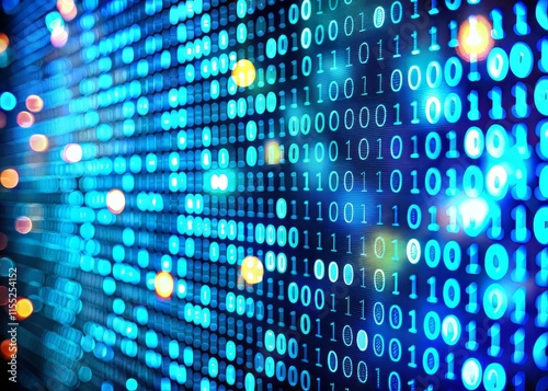 Blue Binary Code Background, Digital Data Technology, Close-Up Bokeh