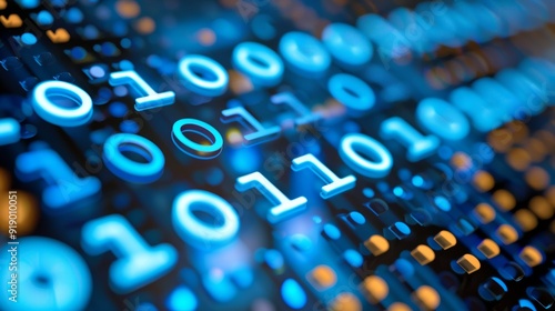 Blue Binary Code Pattern On Black Background. Digital Data Flow Stream. Matrix Futuristic Concept.