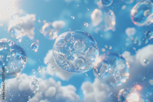blue bubble transparent membrane molecule algae cell water drop algae cell with small particles.